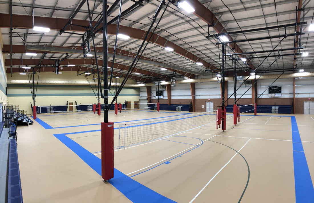 • Custom designed ceiling suspended volleyball systems